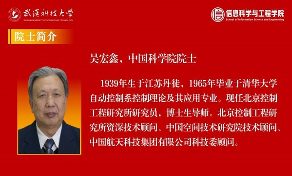 吴宏鑫院士为我国著名控制理论与控制工程专家,中国科学院院士,北京控制工程研究所研究员、博士生导师、资深技术顾问,中国空间技术研究院技术顾问,中国航天科技集团有限公司科技委顾问。目前担任我校人工智能学院院长。