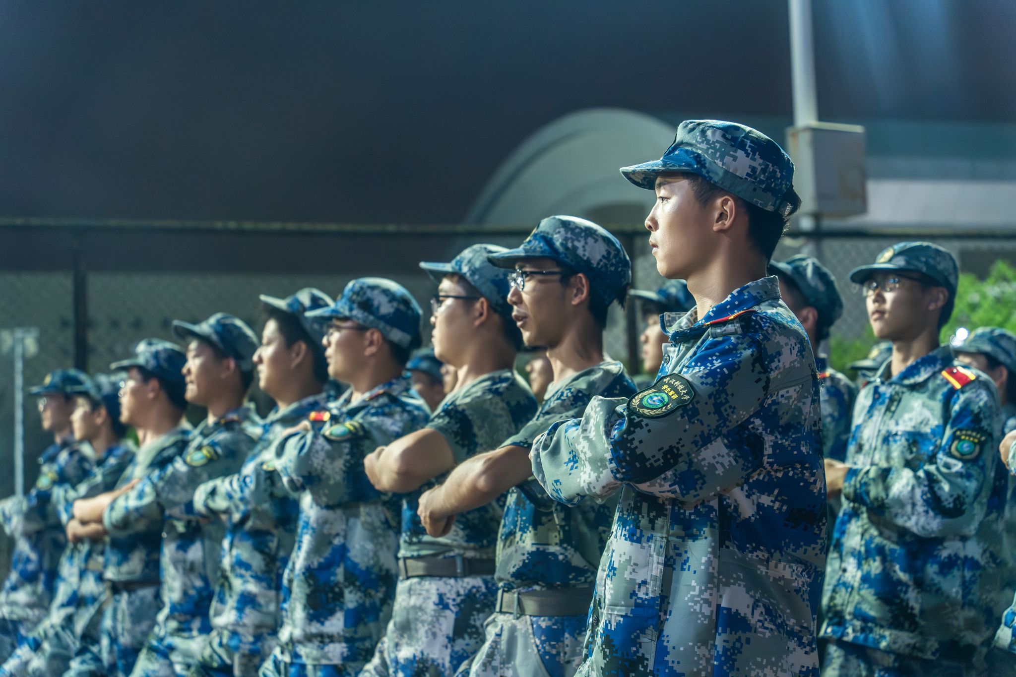 分列式夜训队列侧面特写 刘铮摄