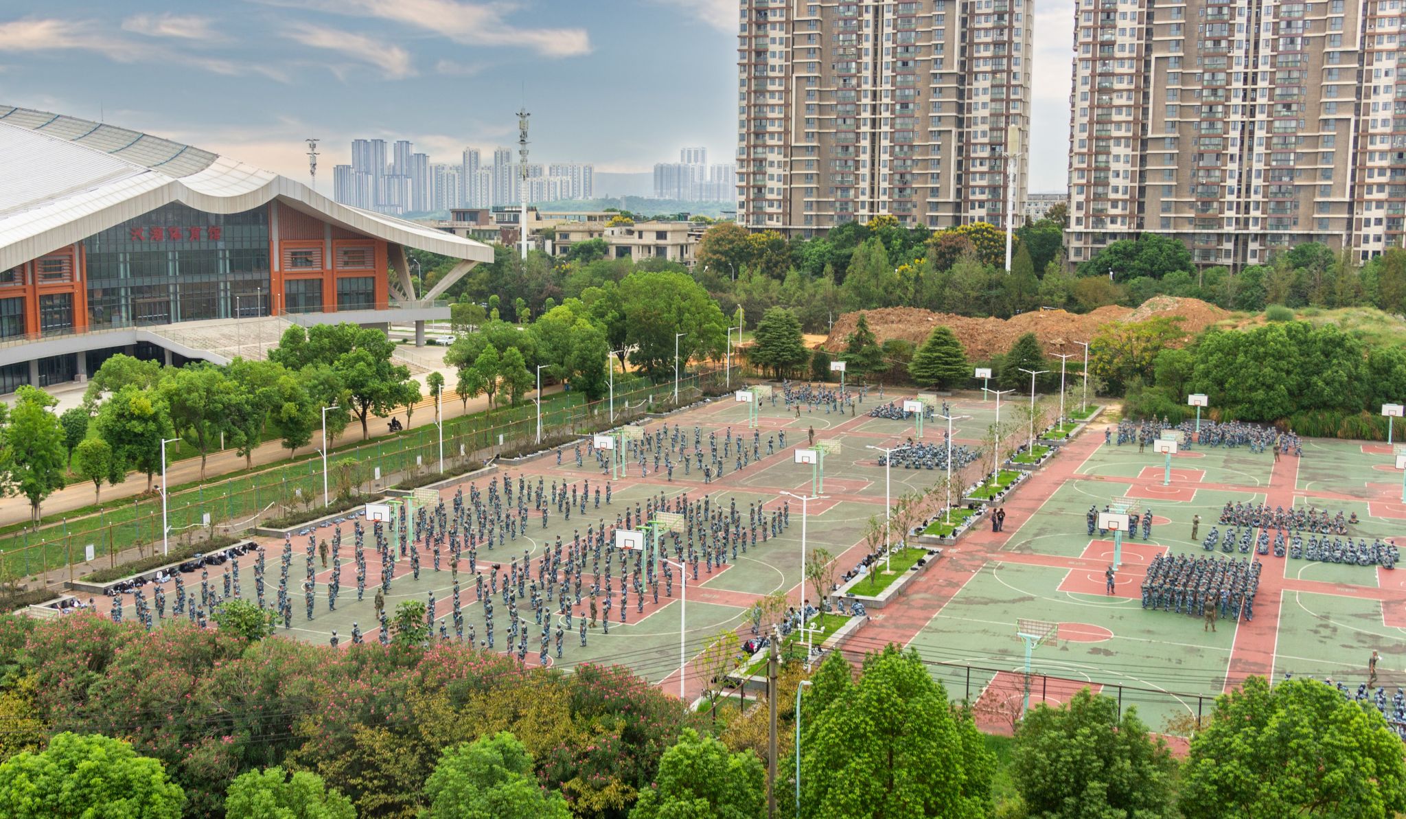 沁湖体育馆下的特色方队训练全景 王翔宇摄