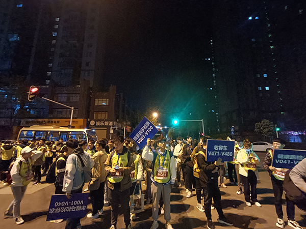 凌晨3点半,我校黄家湖校区的658名志愿者驱车20km,于凌晨5点抵达赛事现场,与青山校区的52名志愿者集结。各赛道入场处,检录组志愿者仔细核对参赛者信息并提供指引。距比赛开始半小时,人墙志愿者手拉手,将参与比赛的不同组别分隔开,以维持秩序。早晨7:30,半程马拉松正式鸣枪开跑,210名医疗志愿者每隔100米分别排开,随时待命,为路过的志愿者提供医疗救助。补给组则将饮料和矿泉水分发到每一个塑料杯,以方便跑者补充水分。