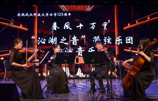 音乐会现场,一首首美妙的曲目接连奏响——《伪装者》原声配乐节奏舒缓注满柔情;管弦乐《安娜波尔卡》氛围轻松愉悦、旋律欢快;民乐合奏《花好月圆》朴实自然且感情真挚......其中,弦乐四重奏《黄河颂》,由武汉音乐学院作曲系教师姬骅在忠于原作《黄河颂》的基础上对《黄河钢琴协奏曲》第二乐章进行重新编配而成,既保留了原有的器乐作品结构特征,又极大可能的体现弦乐四重奏的体裁特点,获得了音乐情绪的延展与完整,其对黄河的热情赞颂将整曲的氛围推向高潮。