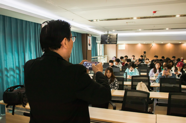312号上午,摄影类兴趣班在教十一A417正式开班,香涛学院聘请我校摄影协会指导老师龚太平担任摄影类课程教师。课堂上,龚太平从自己摄影的人生感悟入手,展示了一张张精美的照片。讲到如何用手机摄影时,学生们纷纷举起了手机,按照龚太平教的方式试拍。