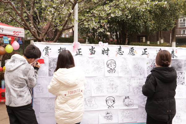 现场还设置有一处“随心画”展板,提供各类画笔与颜料,每位参与者都可以在这留下自己的创作,诠释自己心中的雷锋精神。想参与其中但画技不佳的学生也不必担忧,画卷上准备了草图,学生们可以填色,为画上的“雷锋添上色彩。