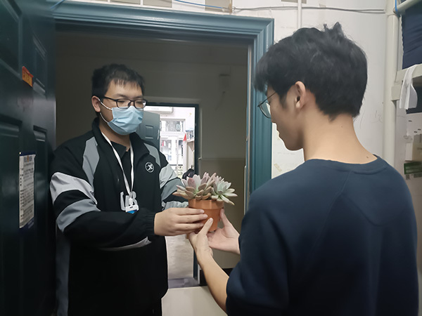 90位志愿者经过7天的努力使得20大包共计800斤的废品被连夜拉走。换来了80盆绿植盆栽等各类环保小礼品被送往捐赠超过20个塑料瓶或10个纸盒学生手中,学生们纷纷感慨:“没想到这样一个小小的举动就能换来如此‘绿色’!我以后再也不乱扔快递盒子了,一定要保护好环境!”机械自动化学院2022级学生彭鑫收到了绿植,他对此十分惊喜:“绿植上门发放,实在是太贴心了!本来没想到会得到绿植的,今后一定会多攒点再参加活动