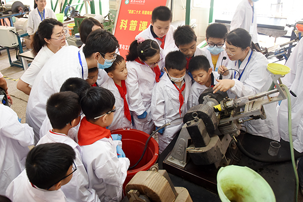 武科大网讯(记者赵孟娇 通讯员郑孟伊 摄影方斌)为什么黑色铁粉会“跳舞”?校园火灾中如何正确逃生?……9月17日,时值2022年全国科普日,我校资环学院开放校内科普基地,开展系列科普教育,一群“红领巾”的参与为本次科普活动注入活力。