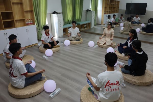 在冥想室中,大王中学初三学生姜智文双腿盘坐,轻闭双眼,调整呼吸,跟随我校心理健康教育中心老师胡文燕的指引,完成了一次放松冥想。“闭上眼睛冥想的时候,感觉自己的身体进行了一次短暂的放松,自己的注意力也能更集中了。”姜智文感觉冥想完“很舒服”。