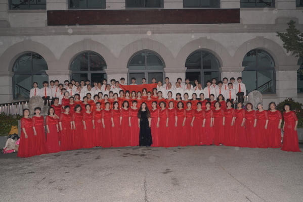 上场之前,90余名师生在指挥姜瑾的带领下进行开嗓练习我校老年团的老师和沁湖之声合唱团的学生成员们用哼鸣的方式建立腔体的共鸣。在此前长达一个多月的多次共同训练的基础上,老教授和学生们的声音达到了高度的和谐。