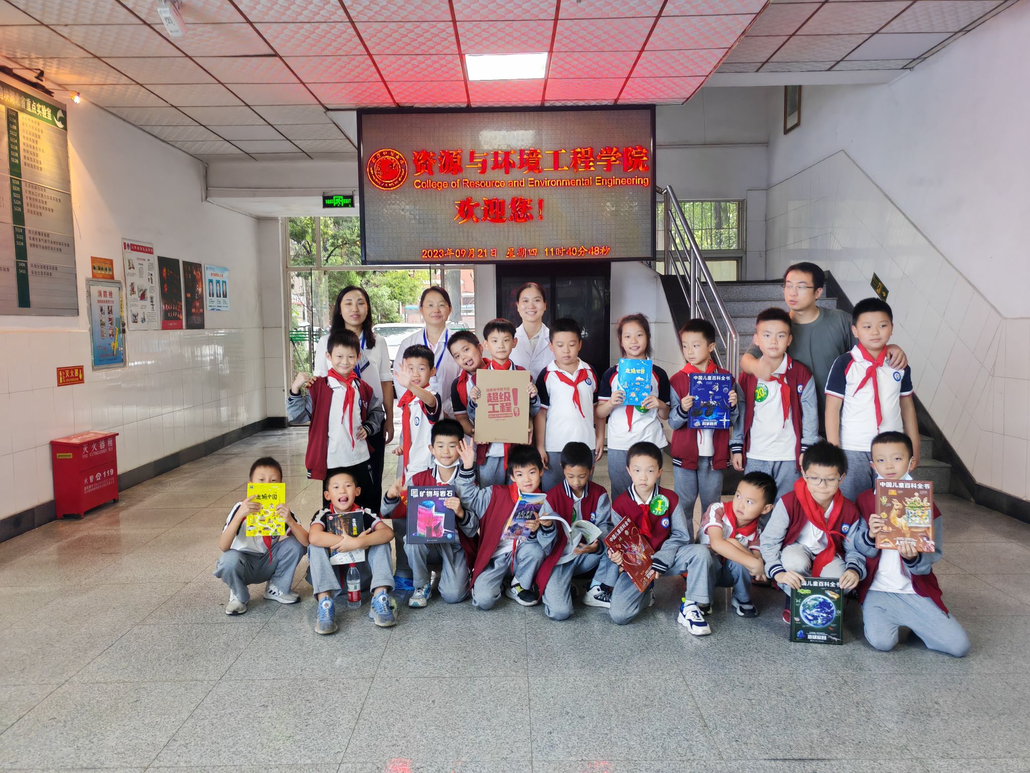 随着校车的驶进,一群“红领巾”到达我校青山校区,每位小朋友还可领取一份研学手册。“我们准备了精美的矿石展览、‘矿粉跳舞’趣味实验,VR安全体验、希望小朋友们能在‘游乐式’的环境中增长对科学的兴趣。”资源与环境工程学院院长韩军介绍道。